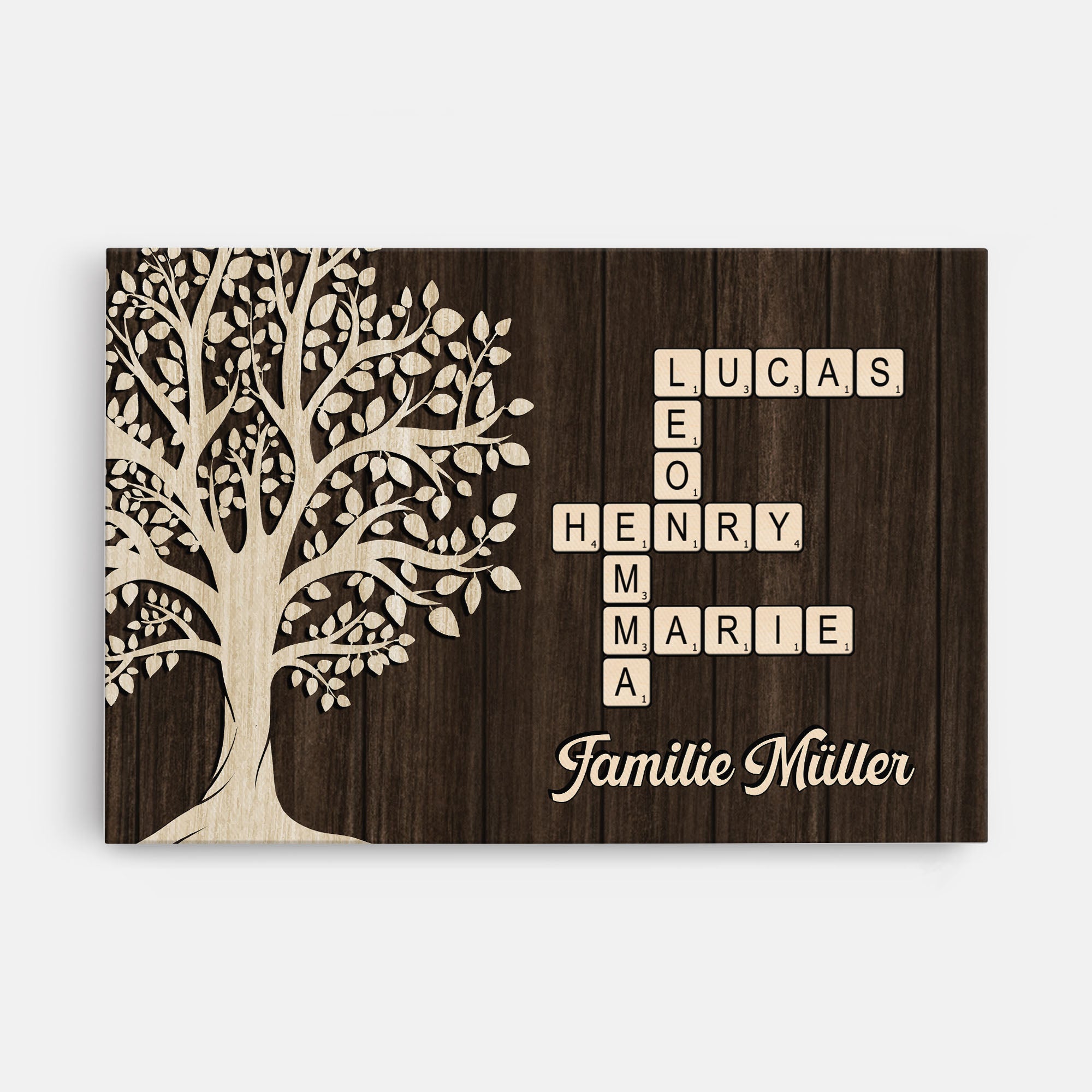 Die Familie Baum - Personalisiertes Kreuzworträtsel Geschenk | Leinwand