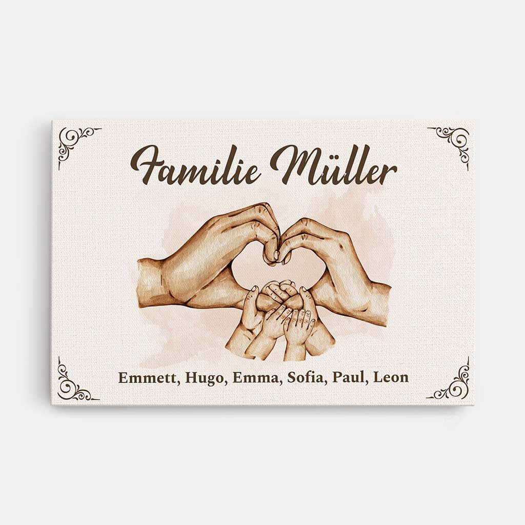 Die Familie Die Hände Der Familie Formen Ein Herz - Personalisiertes Geschenk | Leinwand für die Familie