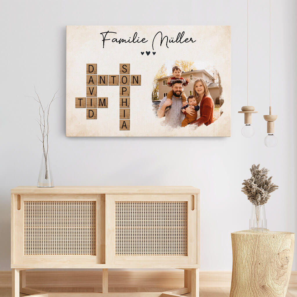 Die Familie Kreuzworträtsel - Personalisiertes Geschenk | Leinwand mit Foto für die Familie