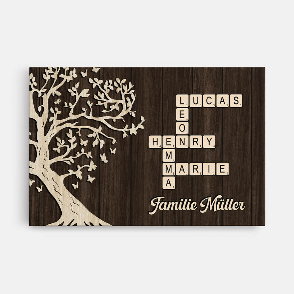 Die Familie Lebensbaum Kreuzworträtsel - Personalisiertes Geschenk | Leinwand für die Familie