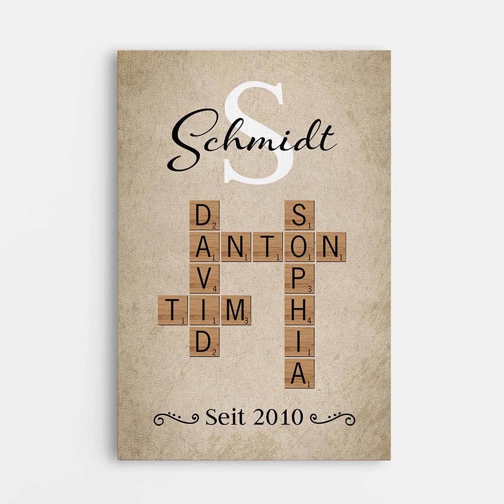 Die Familie - Personalisierte Geschenke | Familienname Kreuzworträtsel Leinwanddruck