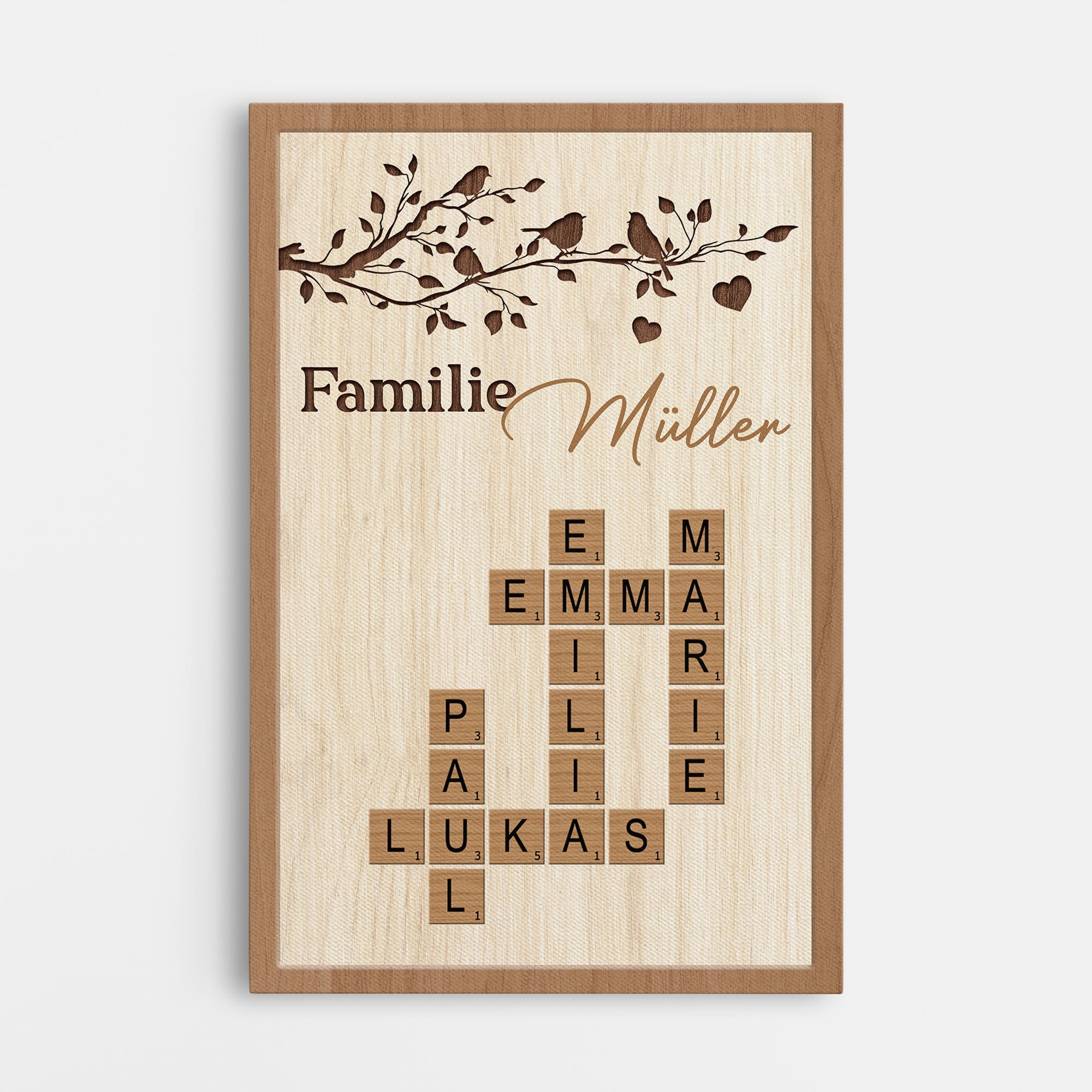 Die Familie - Personalisiertes Kreuzworträtsel Geschenk | Leinwand Baum