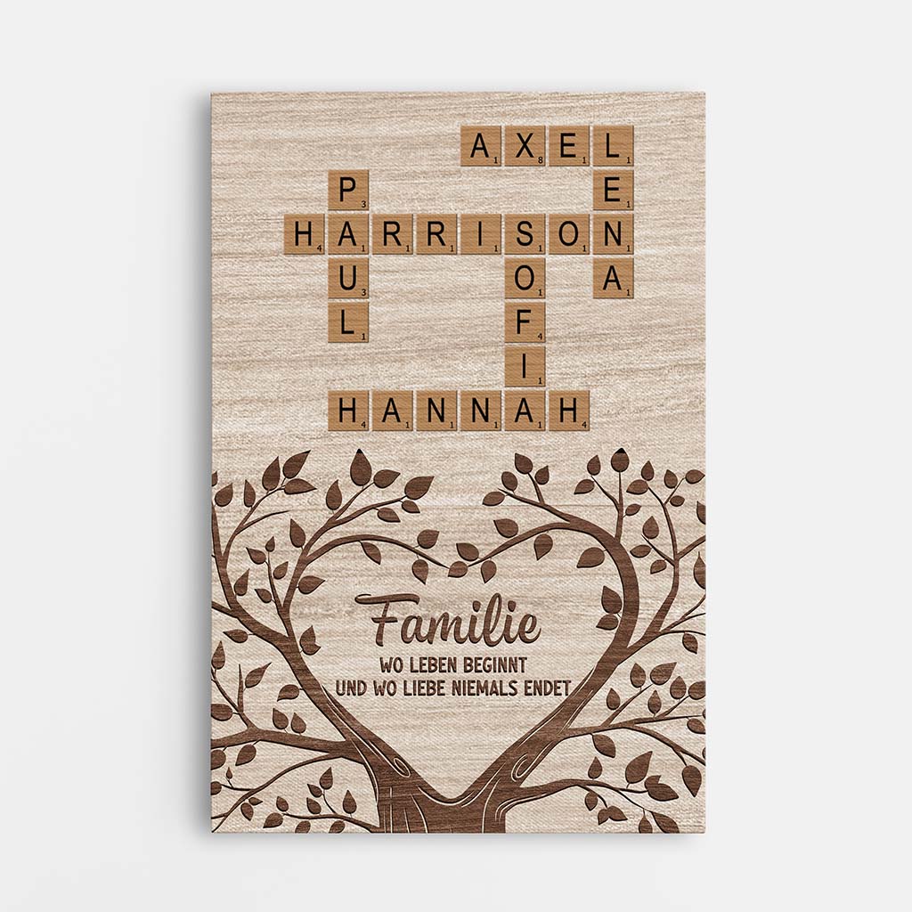 Die Familie Wo Das Leben Beginnt Und Die Liebe Niemals Endet Kreuzworträtsel - Personalisiertes Geschenk | Leinwand für die Familie