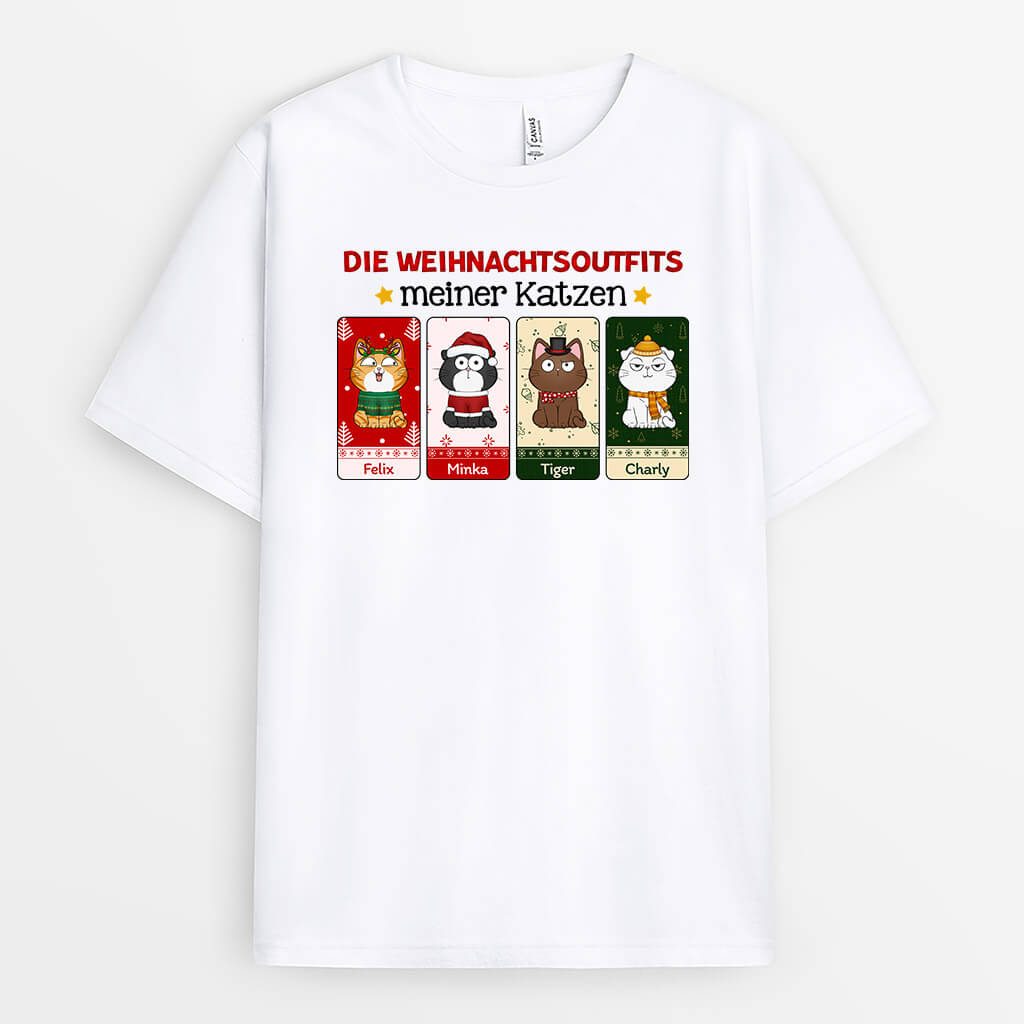 Die Weihnachtsoutfits Meiner Katzen - Personalisiertes Geschenk | T-shirt für Katzenliebhaber