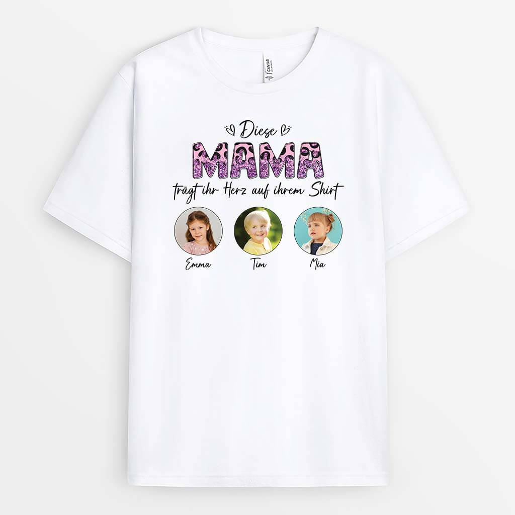 Diese Mama Trägt Ihr Herz Auf Ihrem Shirt - Personalisiertes Geschenk | T-Shirt für Mamas