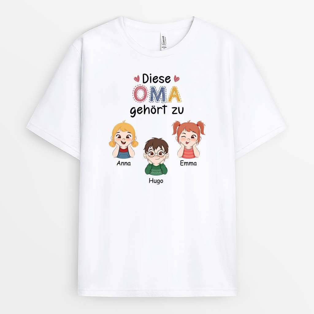 Diese Oma Gehört Zu - Personalisiertes Geschenk | T-Shirt für Omas mit Kinder-Cartoon und Schriftzug in bunten Farben
