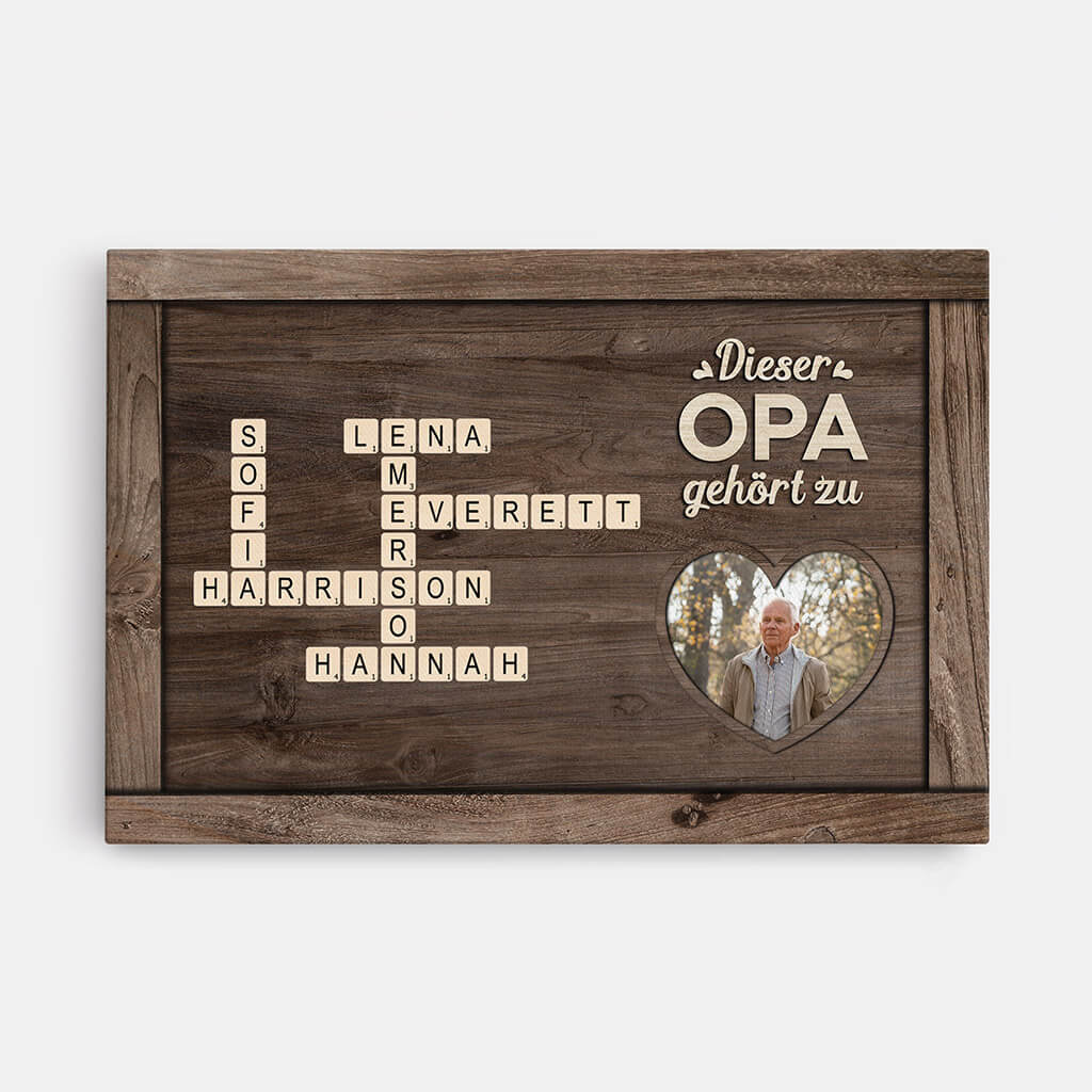 • Dieser Opa/Papa Gehört Zu Kreuzworträtsel - Personalisiertes Geschenk | Leinwand mit Foto für Männer