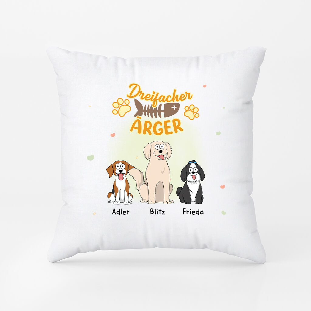 Dreifacher Ärger - Personalisiertes Geschenk | Kissen für Hundeliebhaber