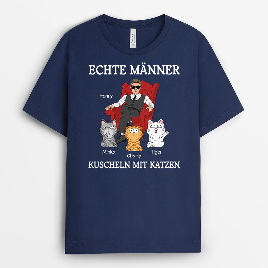 Echte Männer Kuscheln Mit Katzen - Personalisiertes Geschenk | T-Shirt für Katzenliebhaber