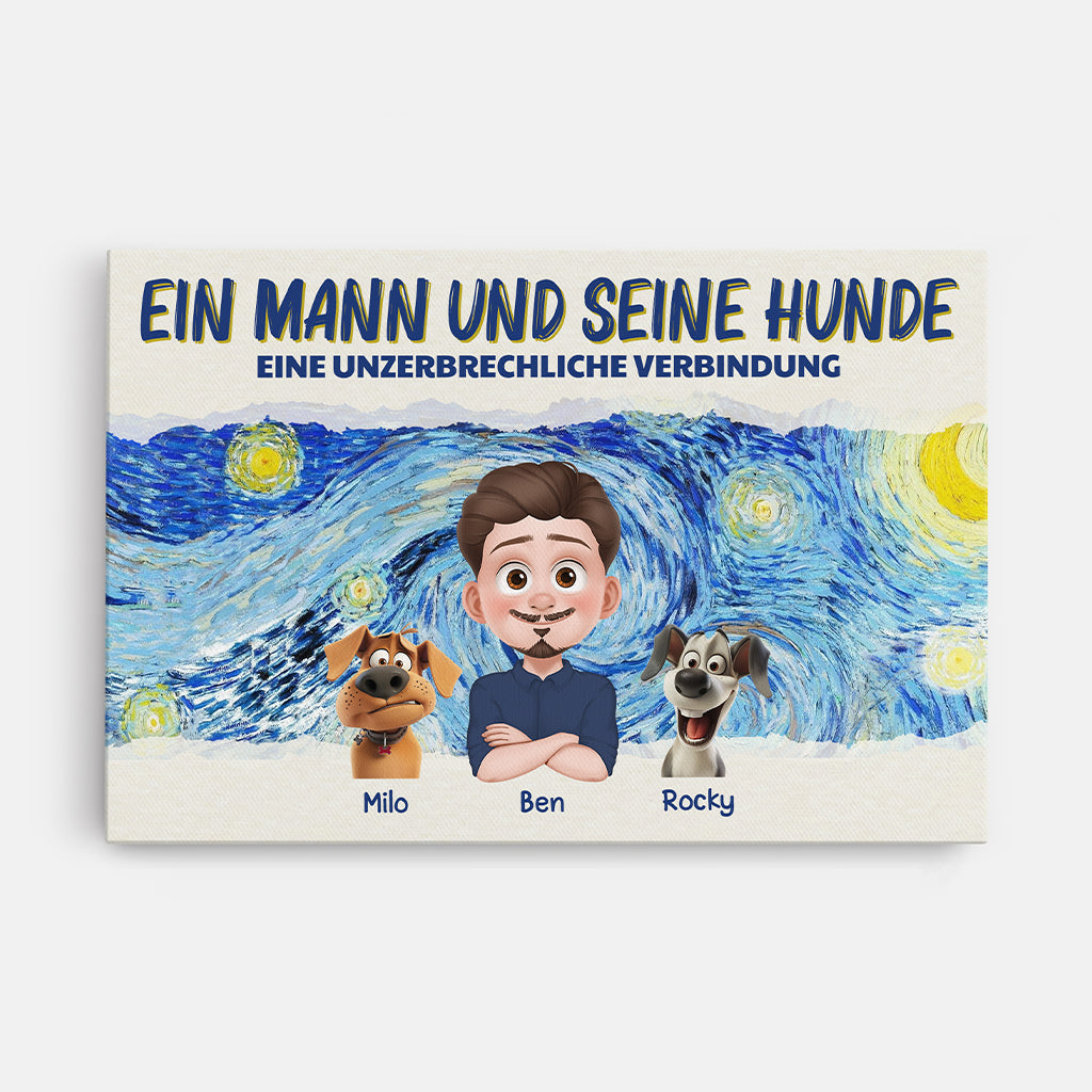 Ein Mädchen Und Ihre Hunde Cartoon - Personalisiertes Geschenk | Leinwand Hund