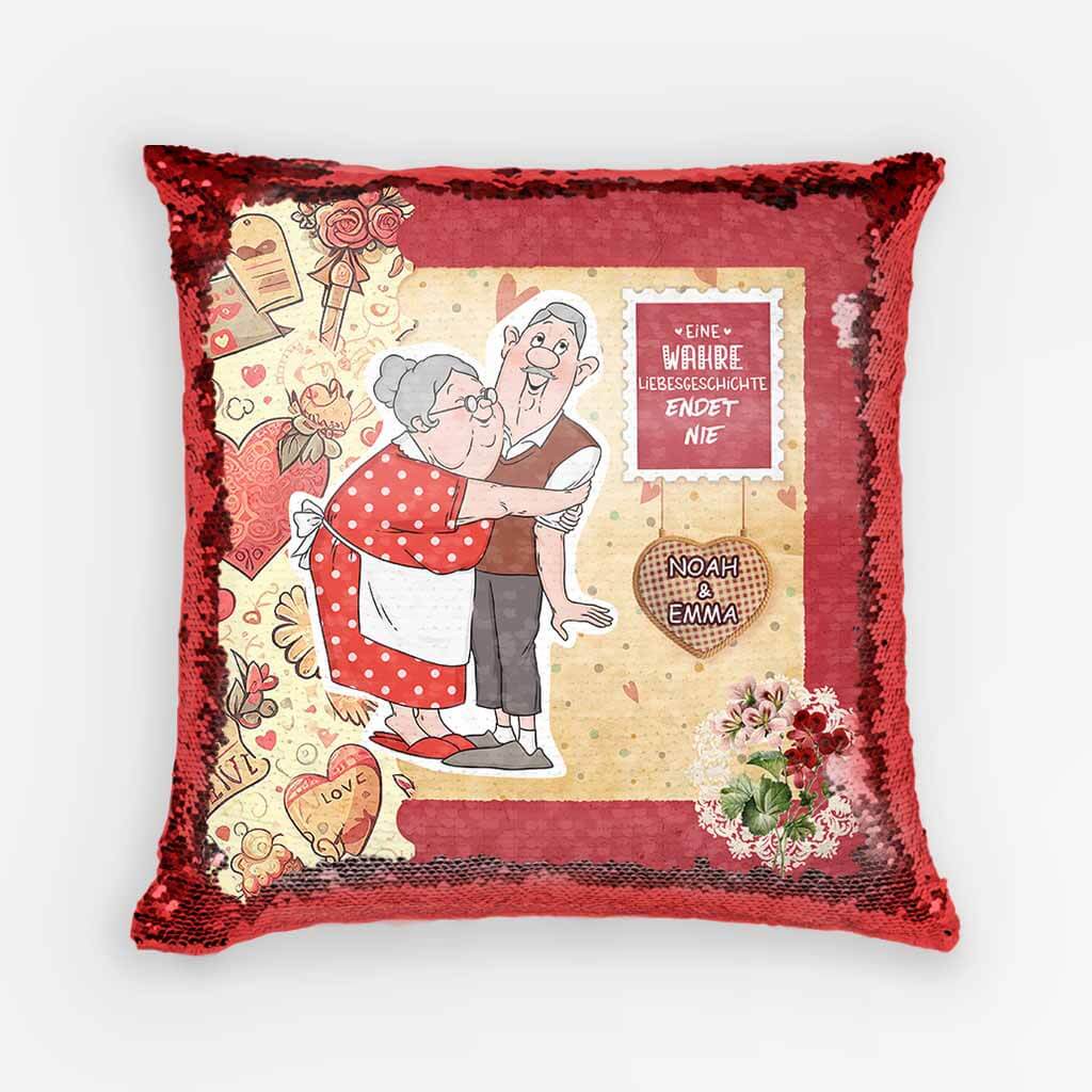 Eine Wahre Liebesgeschichte Endet Nie - Personalisiertes Geschenk | Pailletten Kissen für Paare
