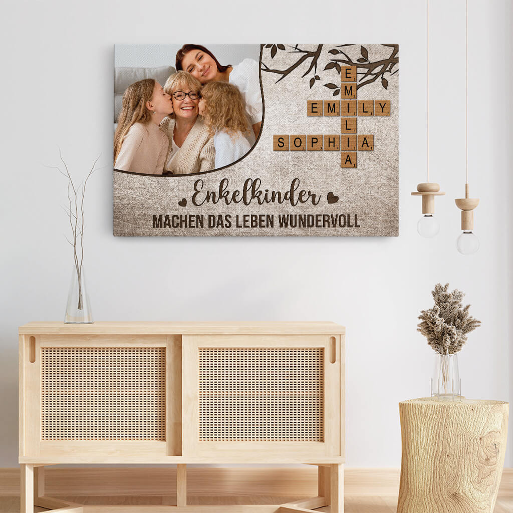 Enkelkinder Machen Das Leben Wundervoll Kreuzworträtsel - Personalisiertes Geschenk | Leinwand für Großeltern mit Foto