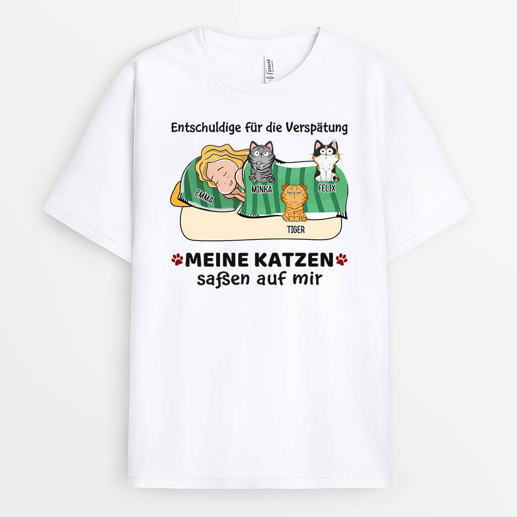 Entschuldige für die Verspätung meine Katze saß auf mir - Personalisiertes Geschenk | T-shirts für Katzenliebhaber
