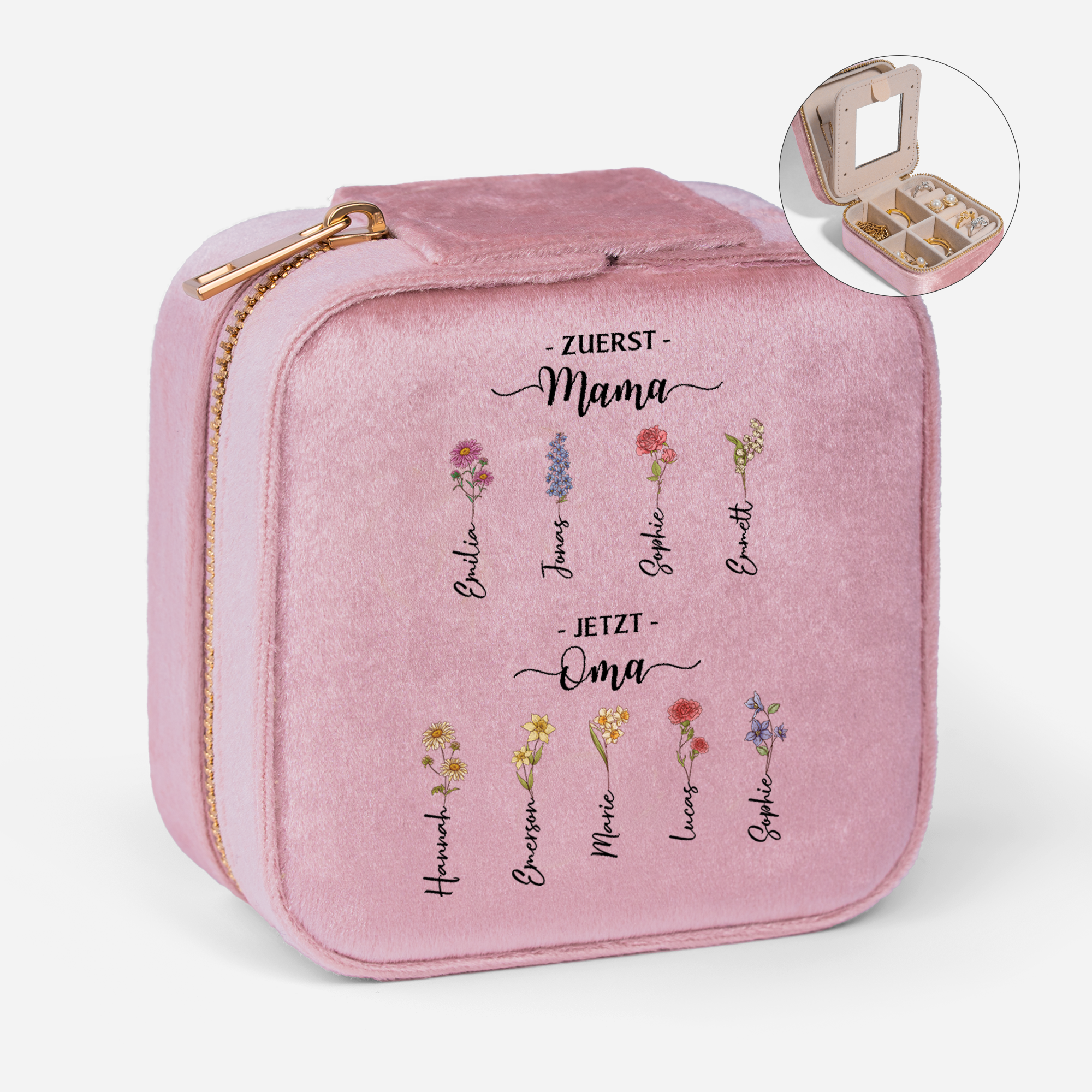 Erst Mama Jetzt Oma - Personalisiertes Geschenk | Schmuckkästchen Samt Blumen