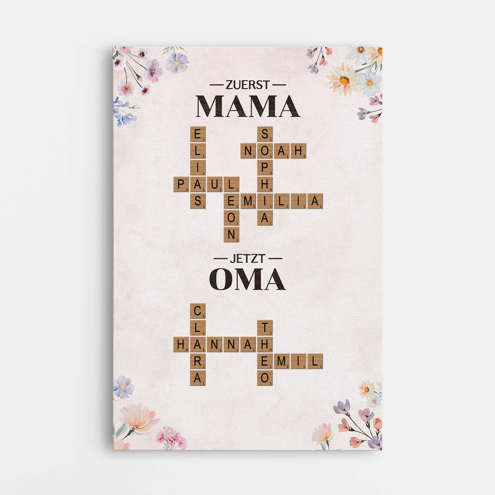 Erst Mama Jetzt Oma - Personalisiertes Kreuzworträtsel Geschenk | Leinwand Blumen