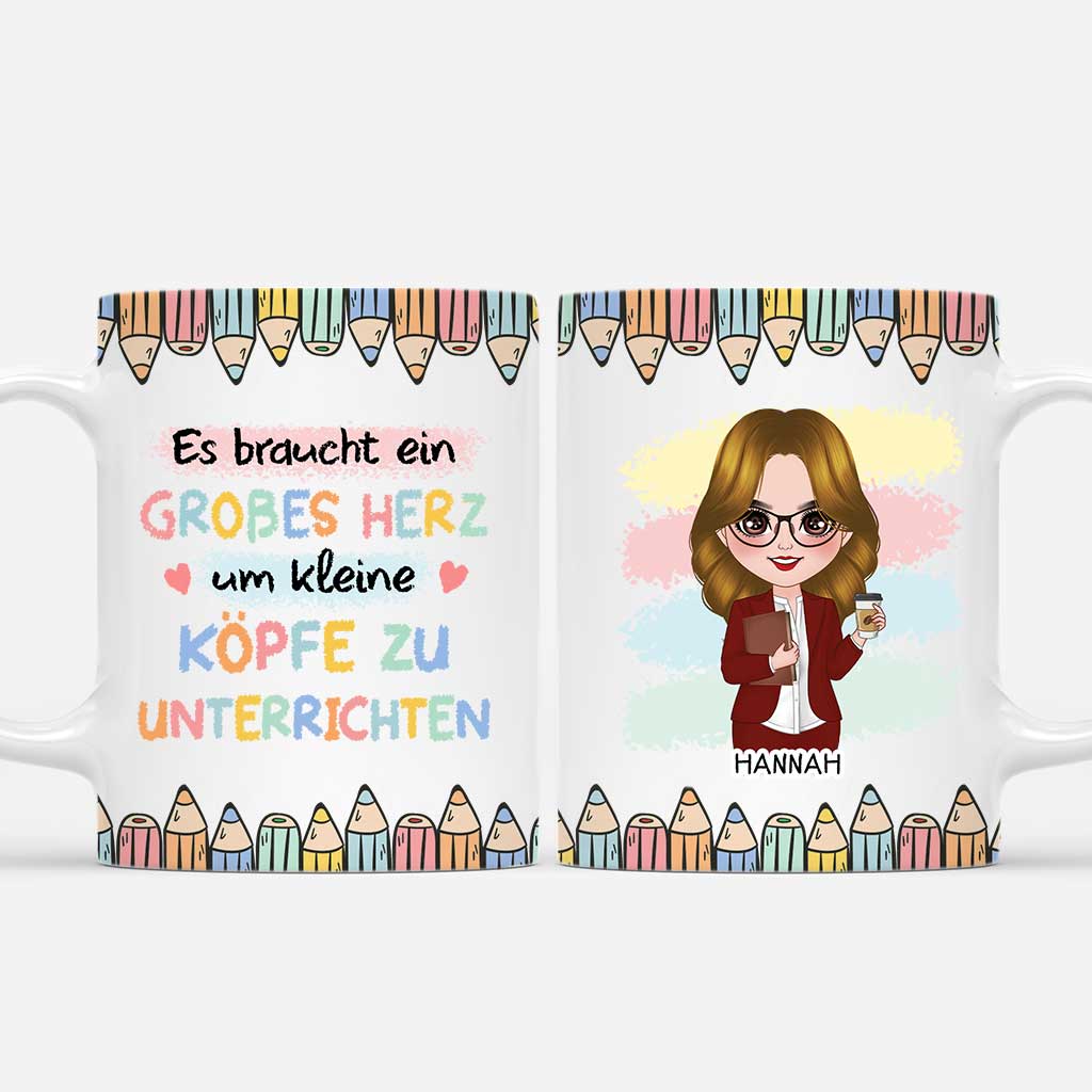 Es Braucht Ein Großes Herz Um Kleine Köpfe Zu Unterrichten - Personalisiertes Geschenk | Lehrer/Lehrerin Tasse Buntstifte