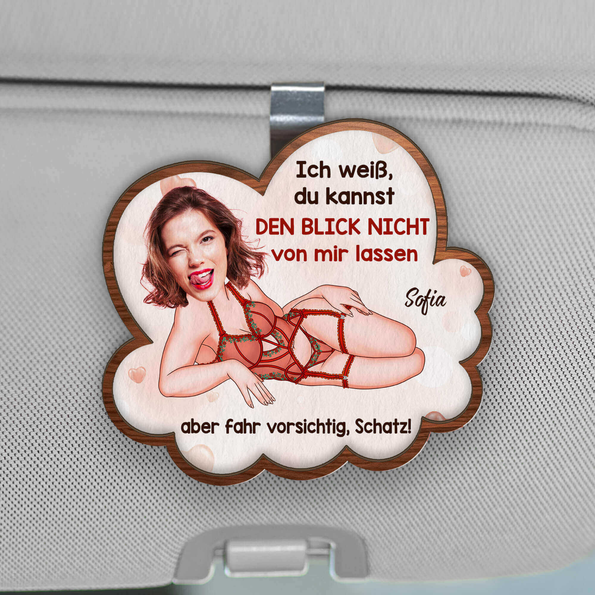 Fahr Vorsichtig Schatz - Personalisiertes Geschenk | Auto Sonnenblende Clip lustig