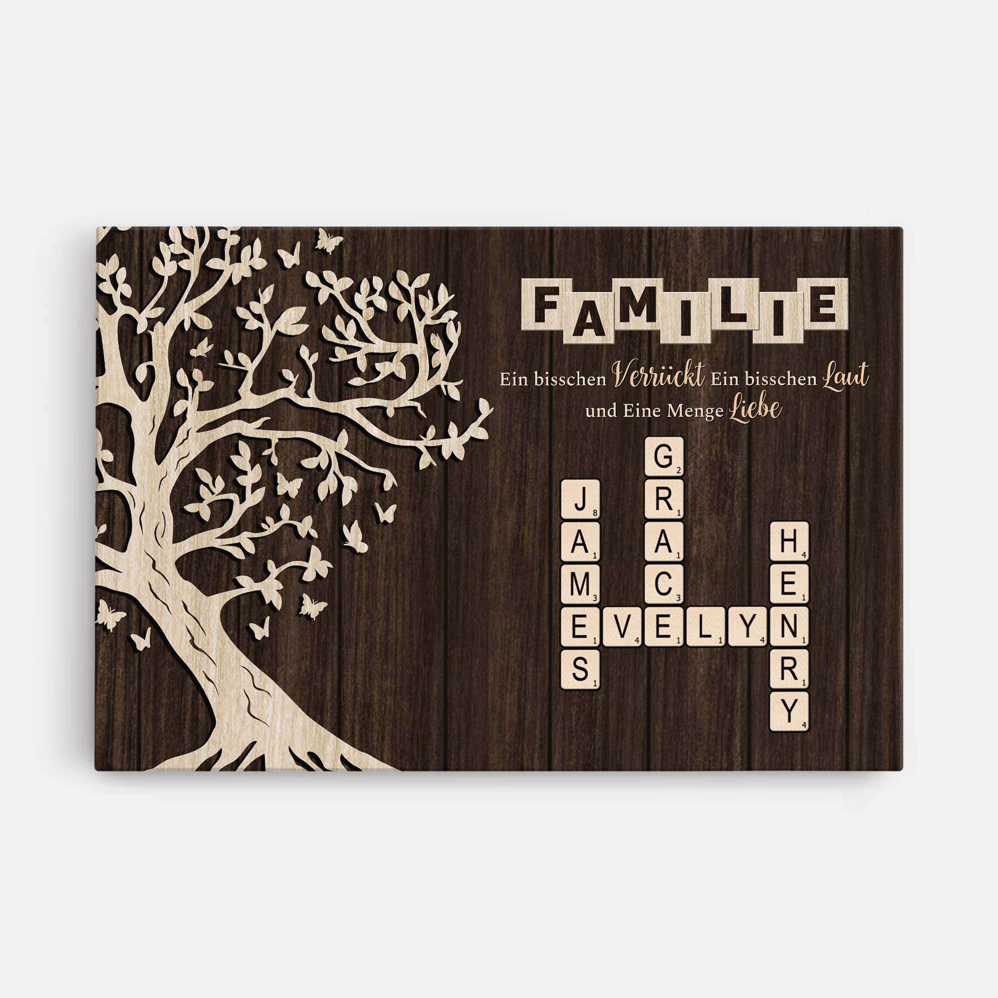 Familie Etwas Verrückt Etwas Laut Und Ganz Viel Liebe - Personalisiertes Kreuzworträtsel Geschenk | Leinwand Baum