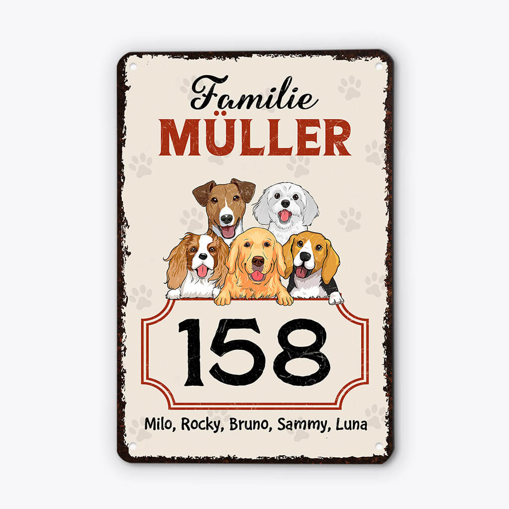 Familie Hausnummer - Personalisiertes Geschenk | Türschild für Hundeliebhaber