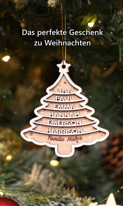 Familie Weihnachtsbaum - Personalisierte Weihnachtsgeschenke | 2-Schicht-Holz-Ornament