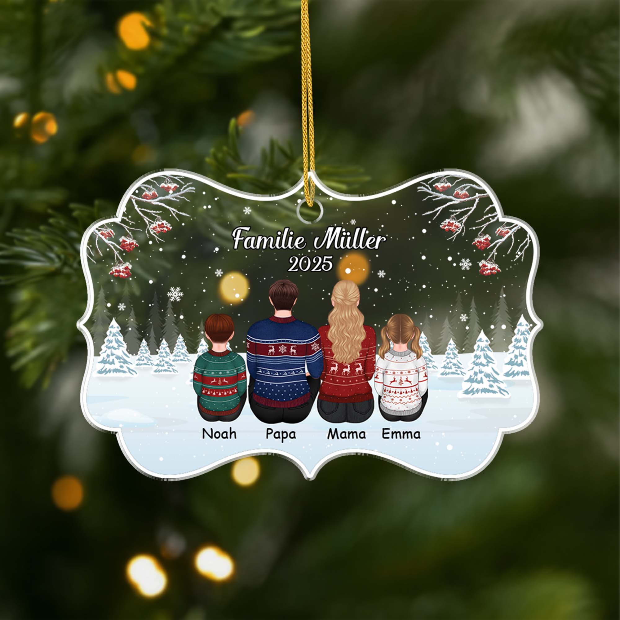 Familienrückenansicht Im Schnee Weihnachten - Personalisiertes Geschenk | Ornament für die Familie