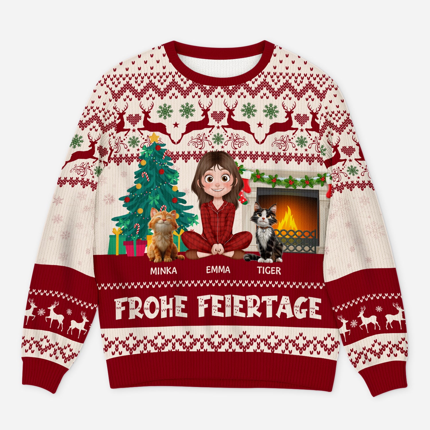 Frohe Feiertage - Personalisierte Weihnachtsgeschenke | Weihnachtspullover Katze