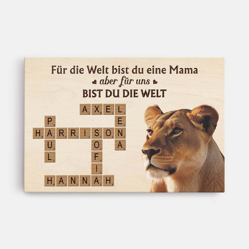 • Für die Welt Bist Du Eine Mama Aber Für Uns Bist Du Die Welt Kreuzworträtsel Löwe - Personalisiertes Geschenk | Leinwand für Mamas