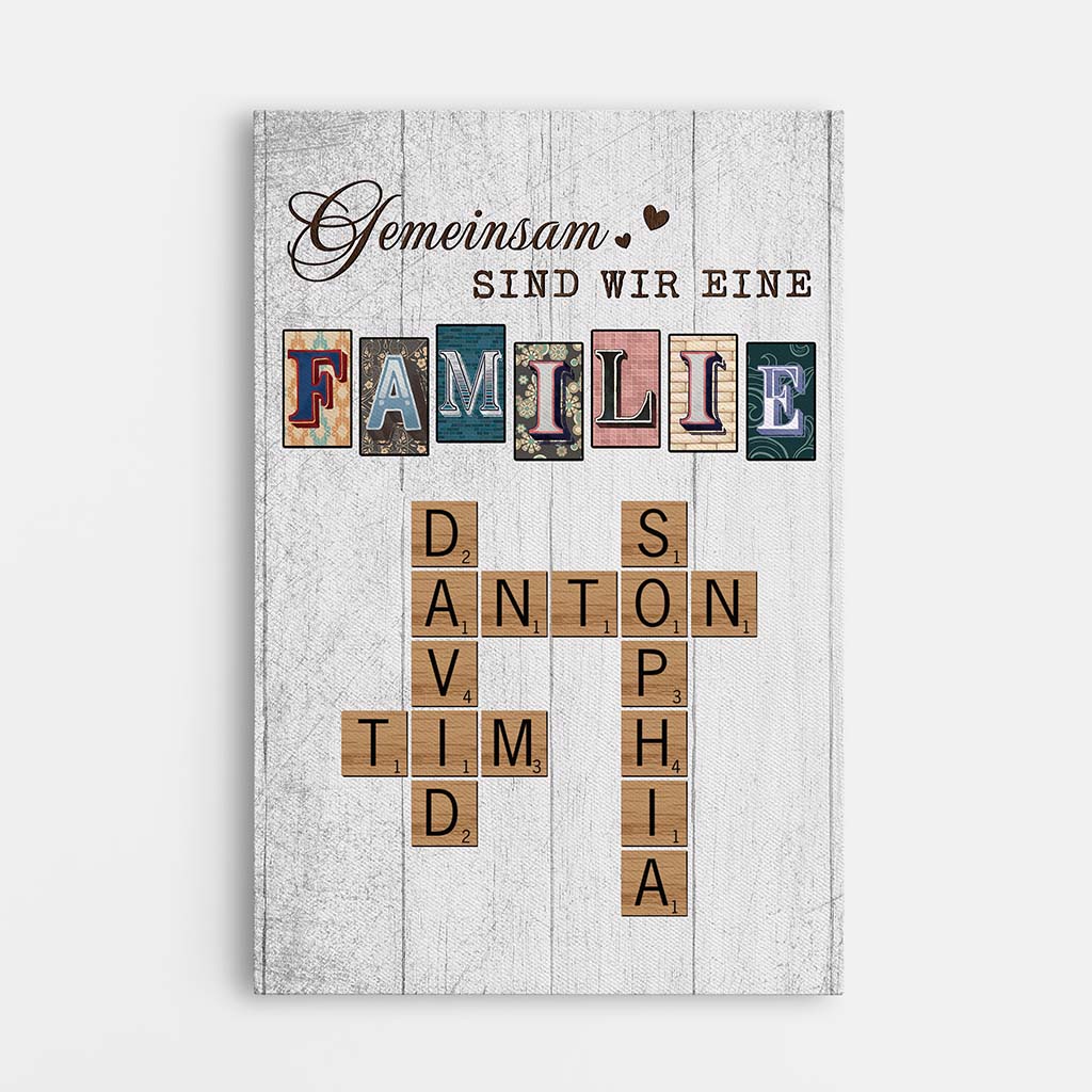 Gemeinsam Sind Wir Eine Familie Kreuzworträtsel - Personalisiertes Geschenk | Leinwand für die Familie im Vintage Stil