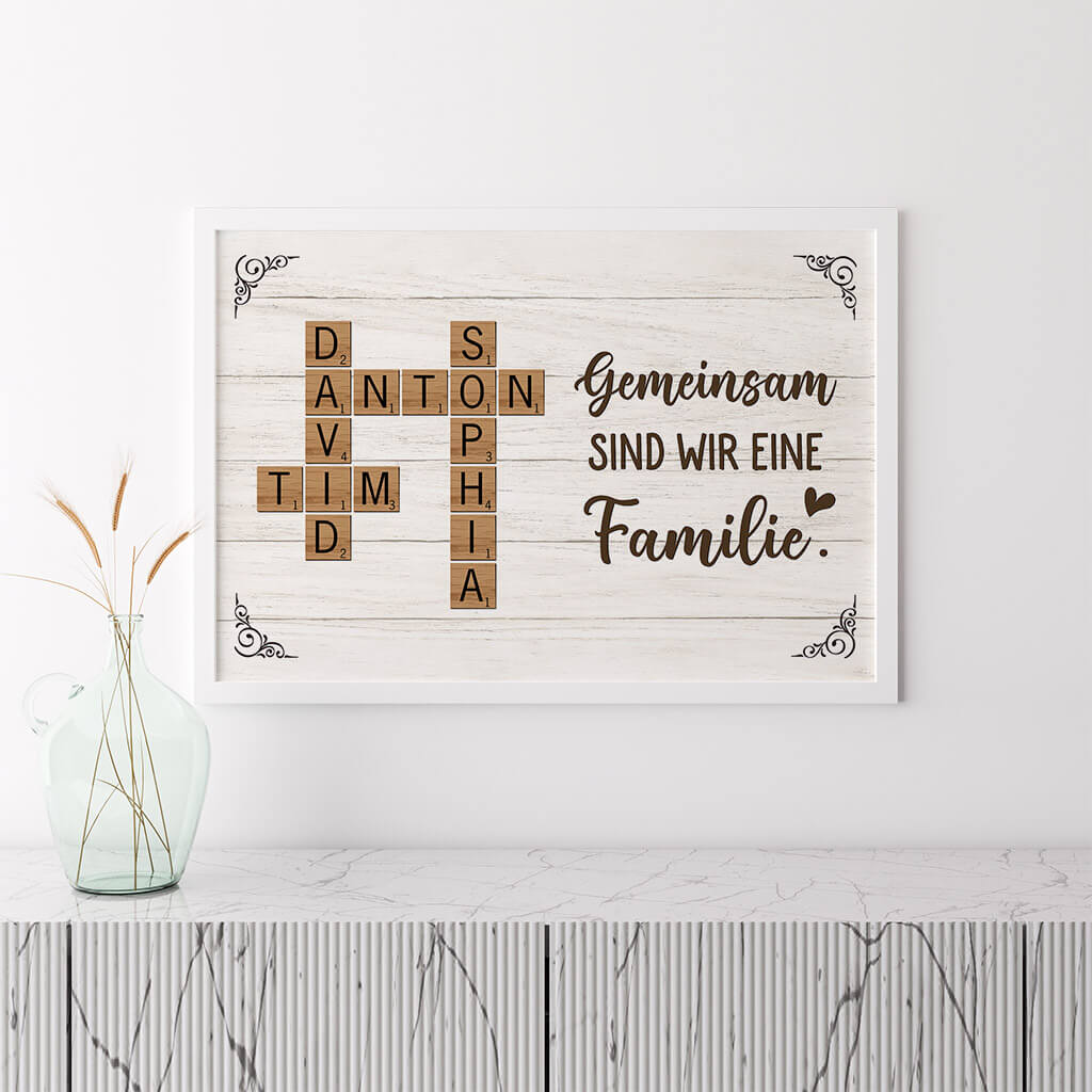 Gemeinsam Sind Wir Eine Familie Kreuzworträtsel - Personalisiertes Geschenk | Poster für die Familie