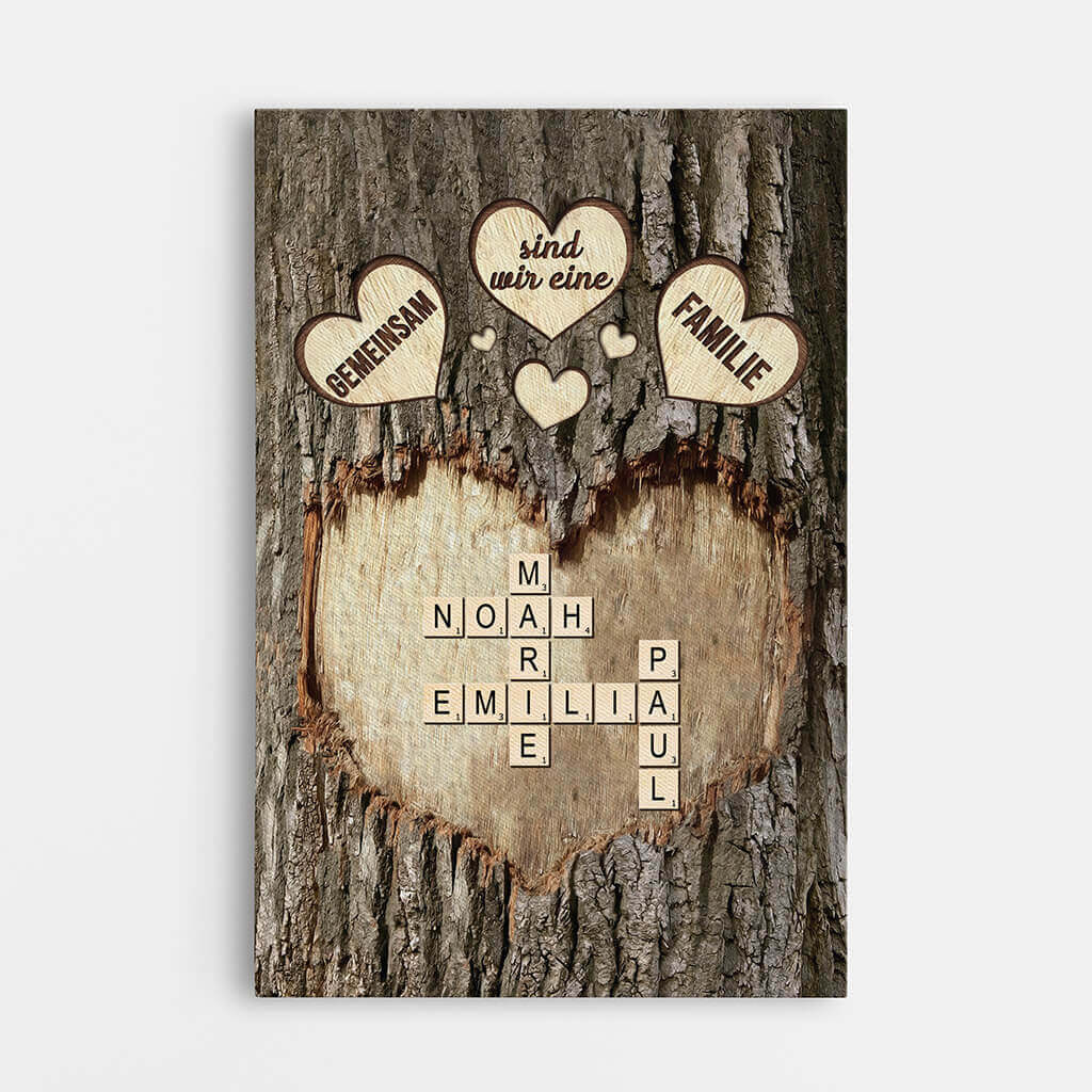 Gemeinsam Sind Wir Eine Familie Kreuzworträtsel Stamm Und Herz - Personalisiertes Geschenk | Leinwand für die Familie