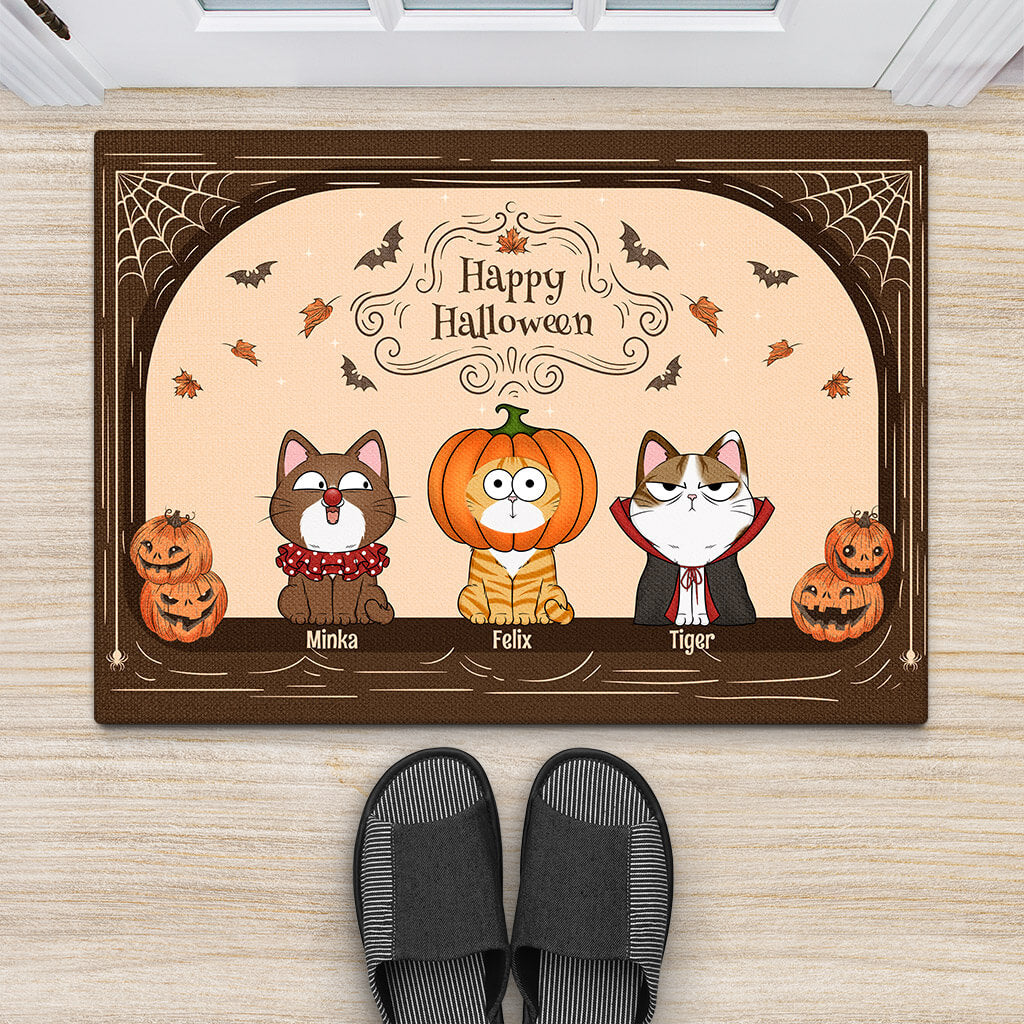 Happy Halloween - Personalisiertes Geschenk | Fußmatte für Katzenliebhaber