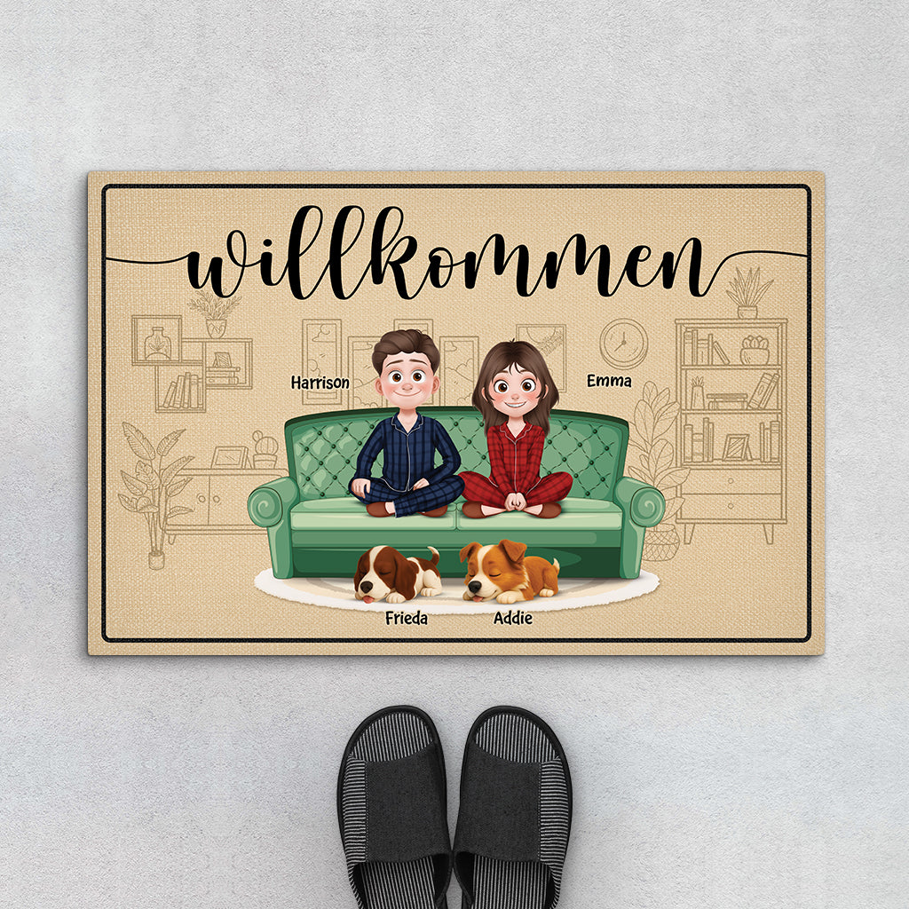 Herzlich Willkommen Cartoon - Personalisierte Geschenke Für Hundebesitzer | Fußmatte