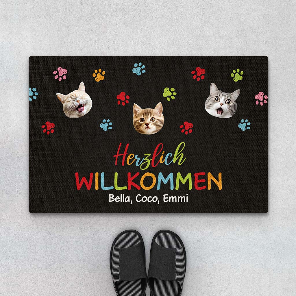 Herzlich Willkommen - Personalisiertes Gesschenk | Fußmatte für Katzenliebhaber