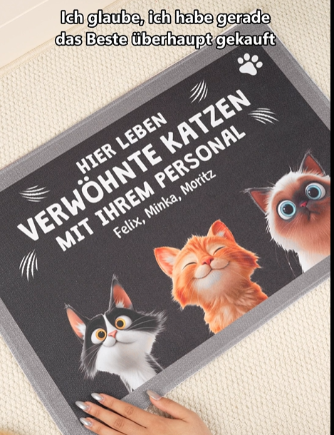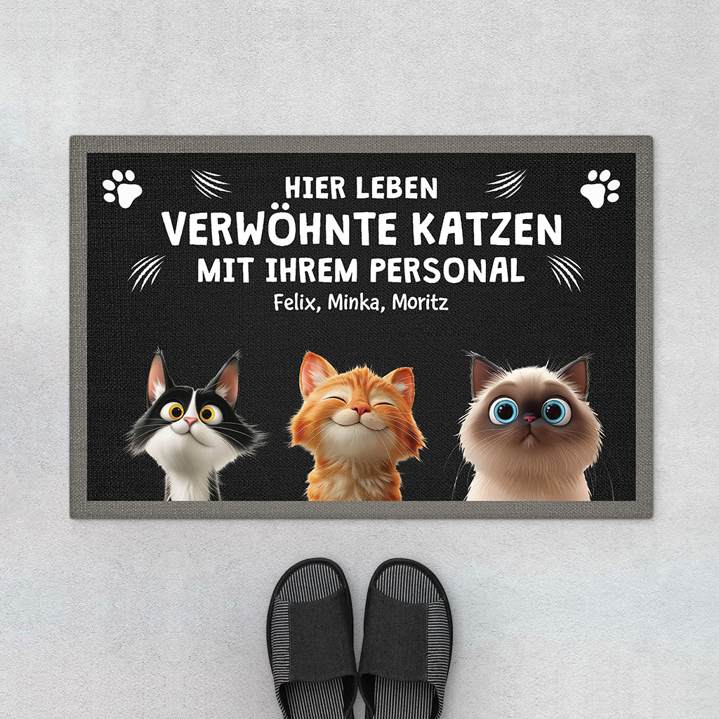 Hier Leben Verwöhnte Katzen Mit Ihrem Personal - Personalisiertes Geschenk | Fußmatte Katze