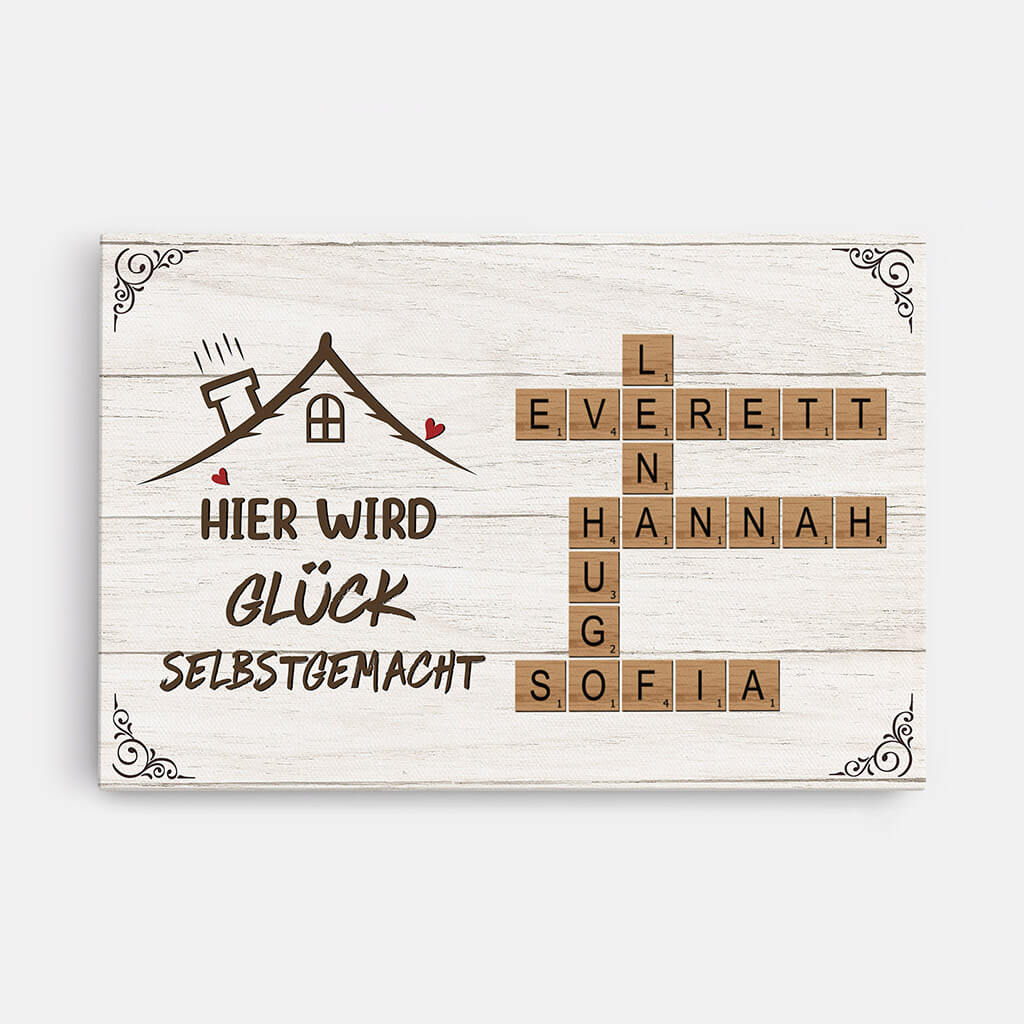 Hier Wird Glück Selbstgemacht - Personalisiertes Geschenk | Leinwand für die Familie