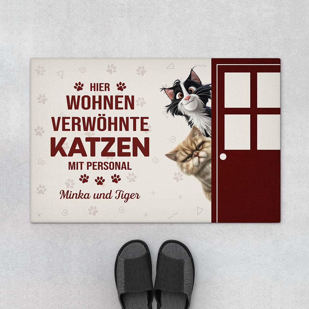 Hier Wohnt Eine Verwöhnte Katze Mit Personal - Personalisierte Geschenke Katze | Fußmatte