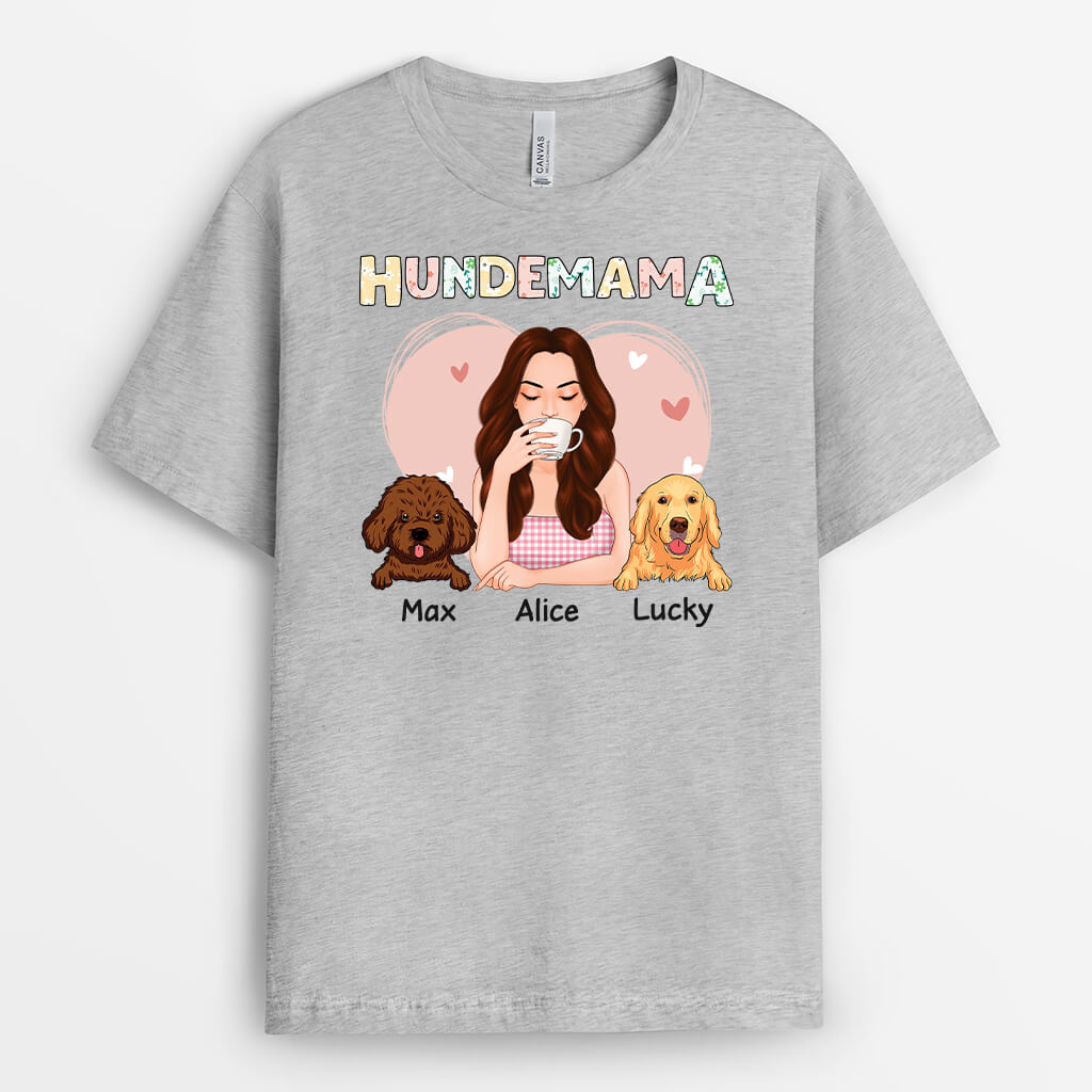 Hundemama Mit Blumen Und Herz - Personalisiertes Geschenk | T-shirt für Hundeliebhaber