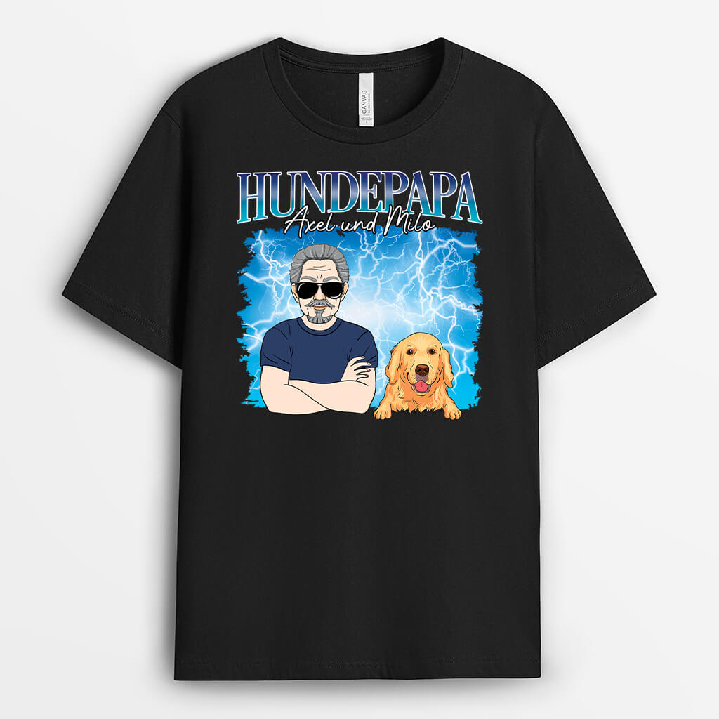 Hundepapa Mit Donner Muster - Personalisiertes Geschenk | T-shirt für Hundeliebhaber
