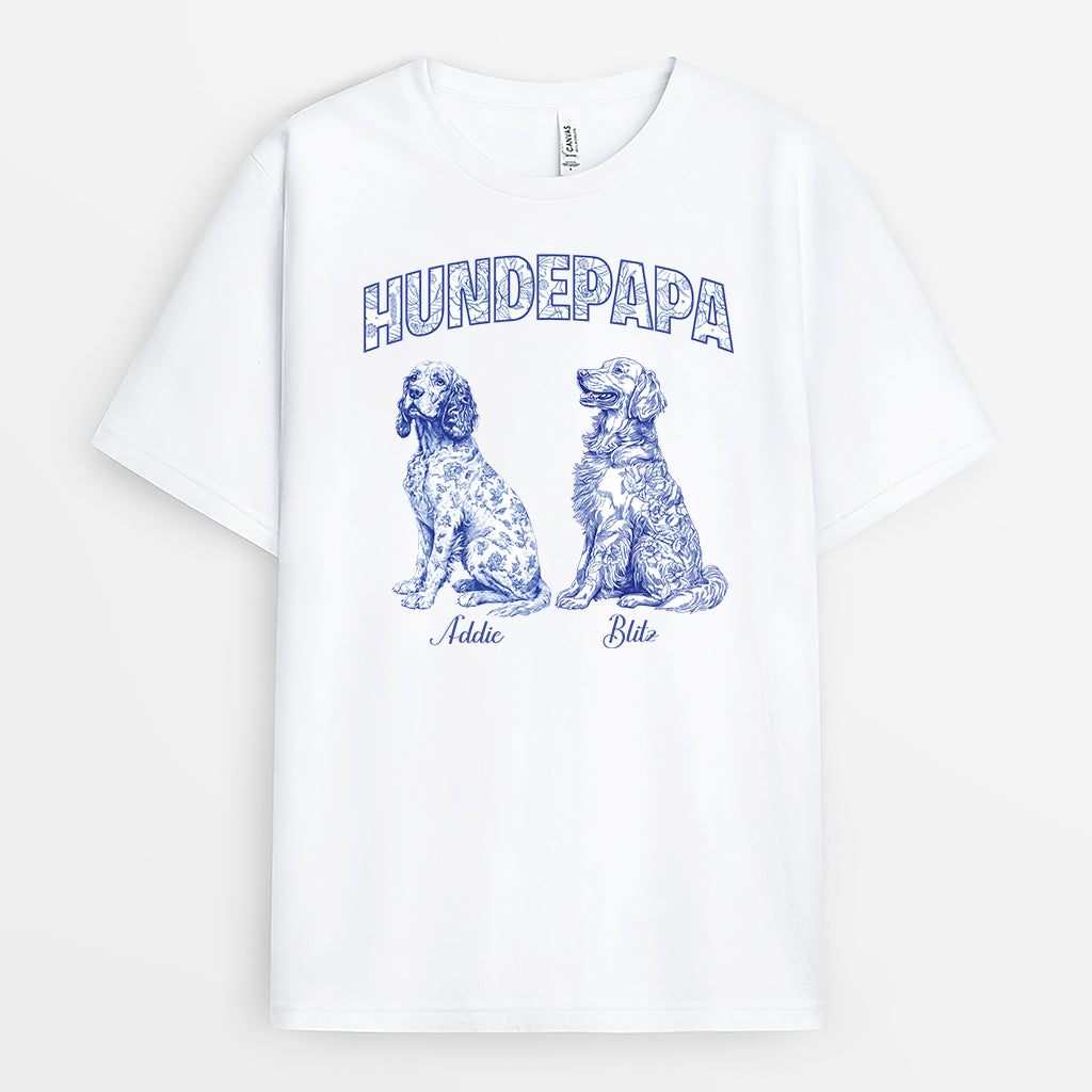 Hundpapa Blue Toile Fabric - Personalisiertes Geschenk | Hunde T-shirts