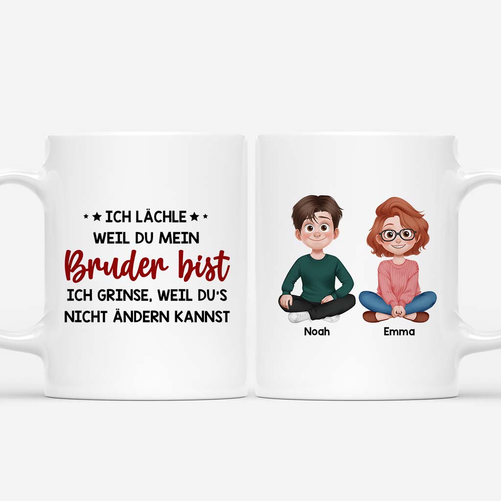 Ich Lächle Weil Du Mein Bruder Bist - Personalisierte Geschenke Bruder/Schwester | Tasse Cartoon
