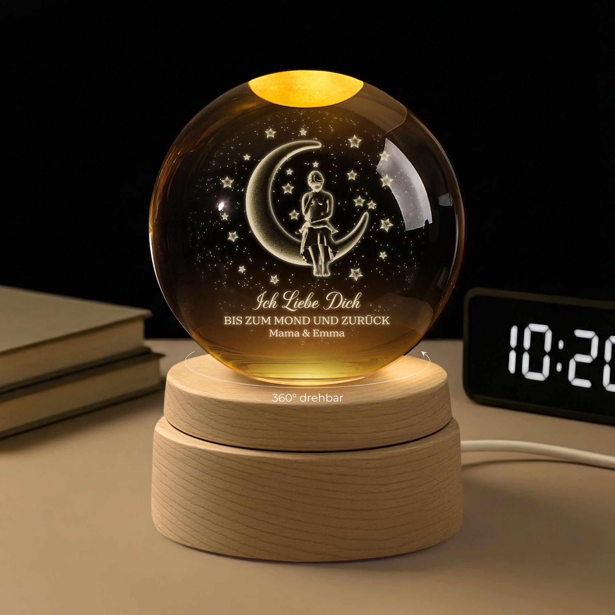 Ich Liebe Dich Bis Zum Mond Und Zurück - Personalisierte Geschenke Für Mama | 3D Kristallkugel