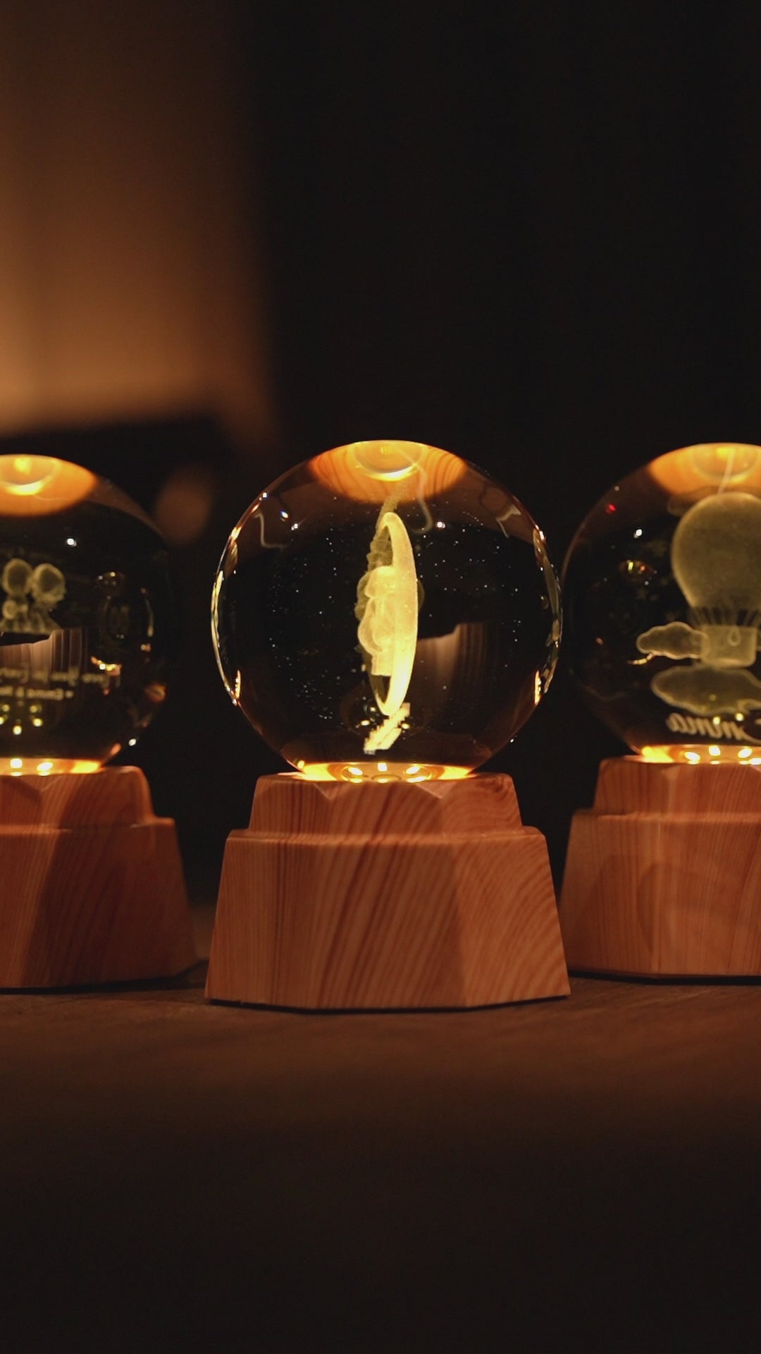 - Material: K9-Kristall & drehbare LED-Holzbasis.