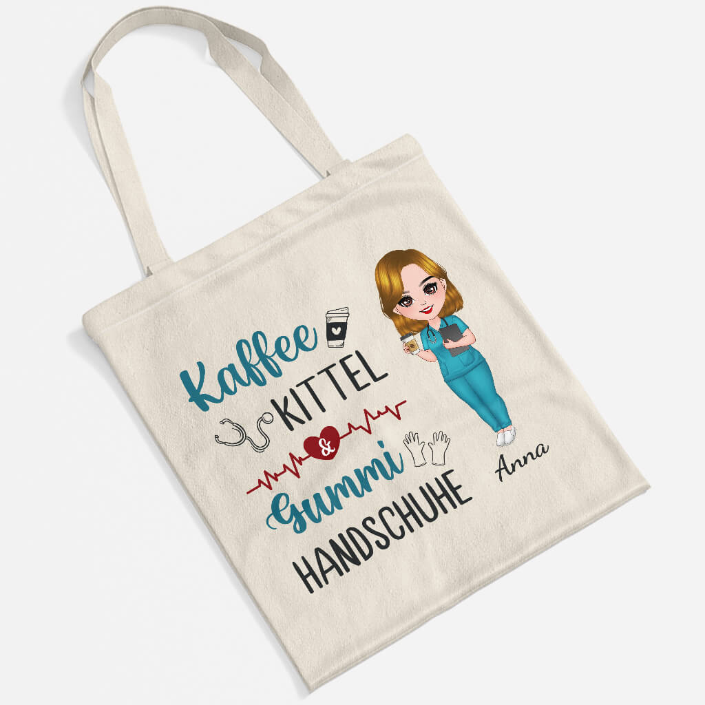 Kaffee Kittel Und Gummihandschuhe - Personalisiertes Geschenk | Tragetasche für Krankenschwestern