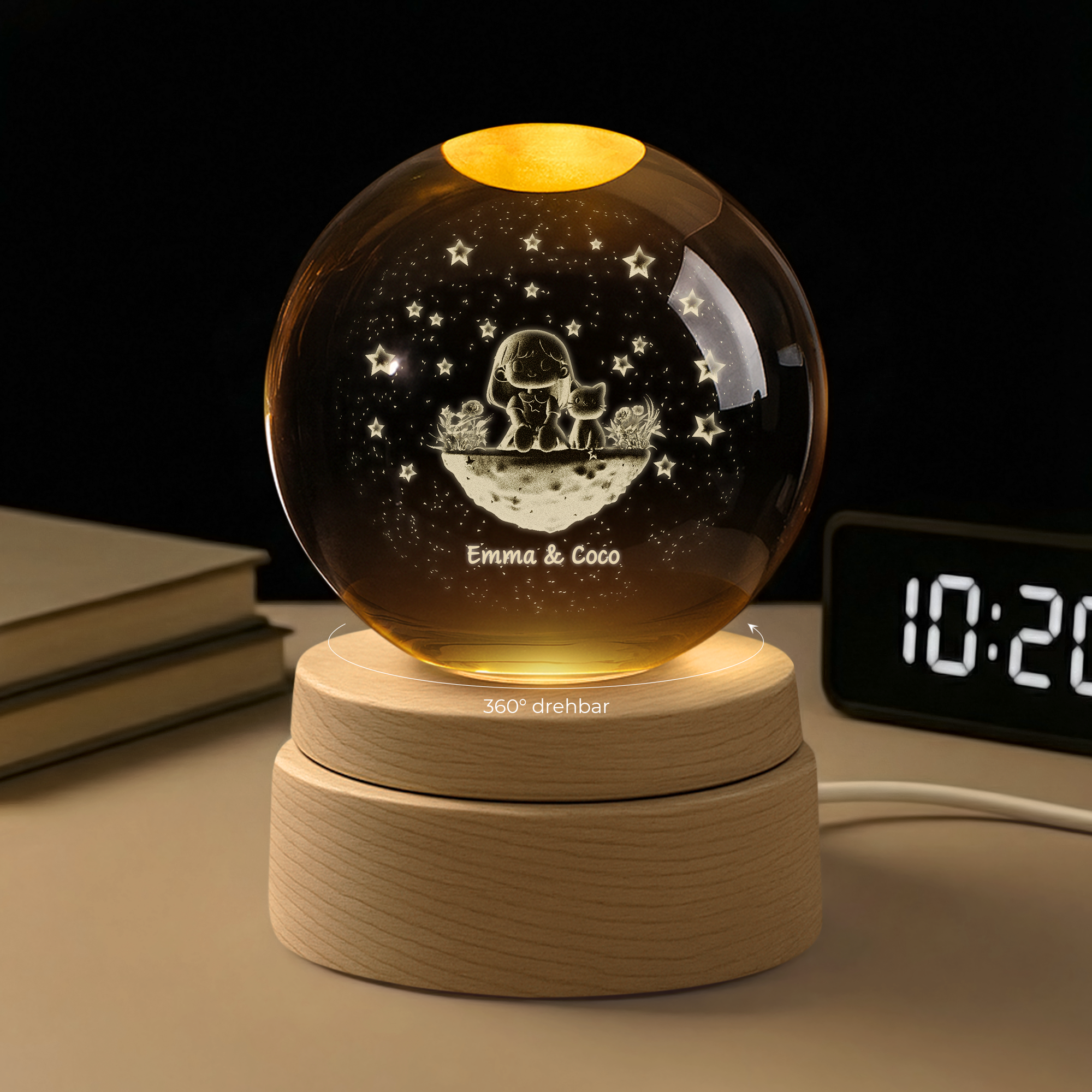 Katze/Hund Und Mensch - Personalisiertes Geschenk | 3D Kristallkugel