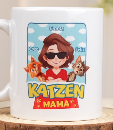 Katzenmama Cartoon - Personalisiertes Geschenk | Katzen Tasse