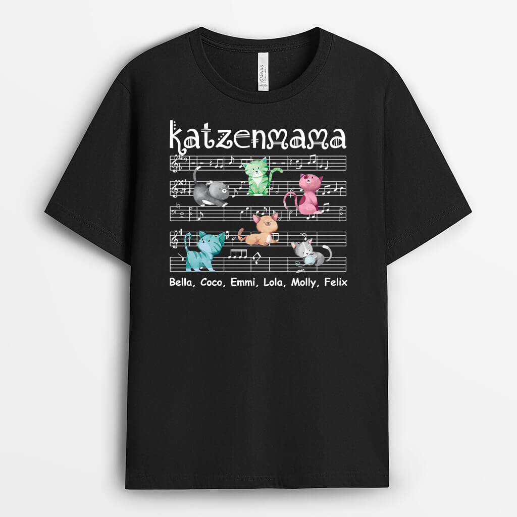 Katzenmama/Katzenpapa mit Musik - Personalisiertes Geschenk | T-shirt für Katzenliebhaber