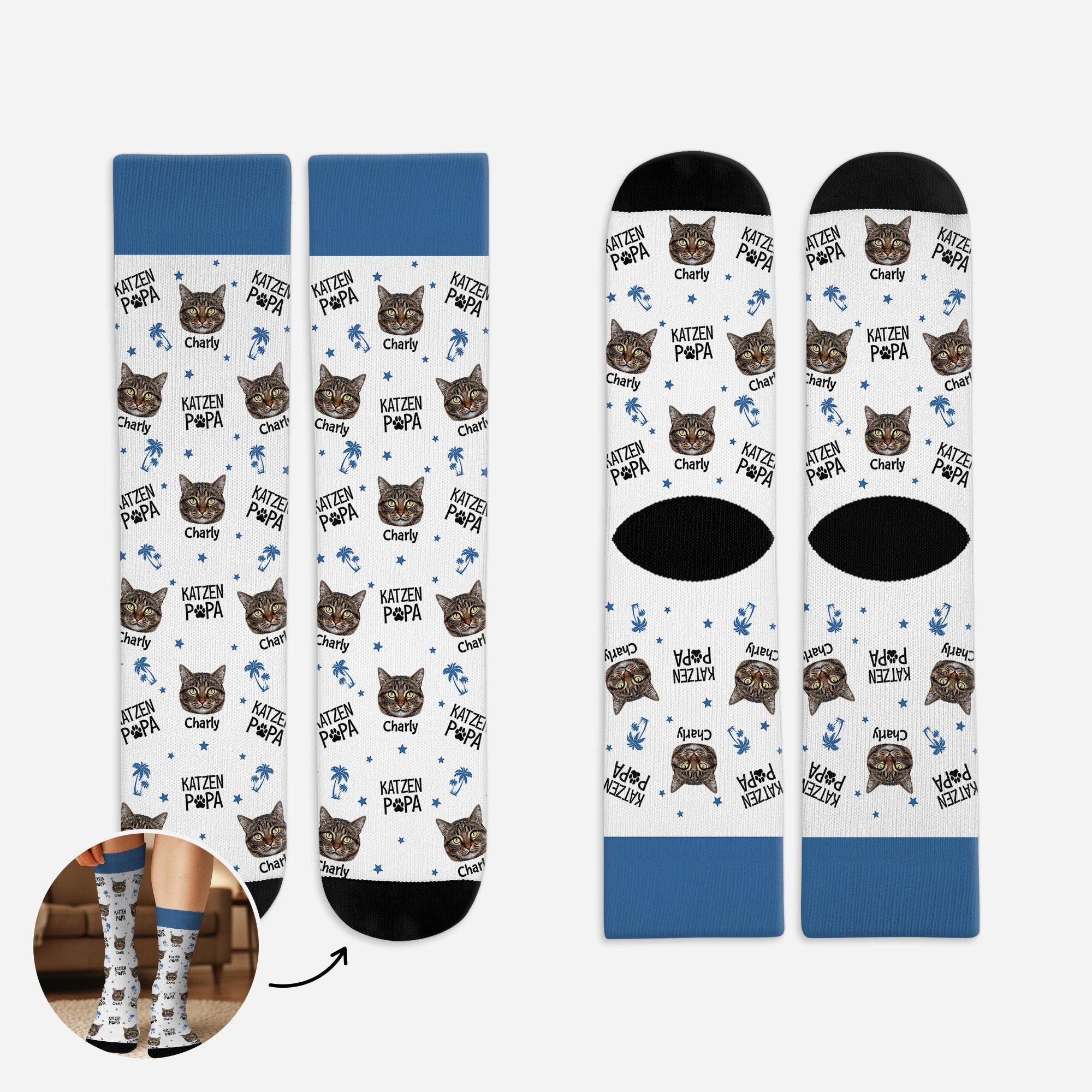 Katzenmama Katzenpapa - Personalisierte Geschenke Katze | Socken Foto mit Gesicht