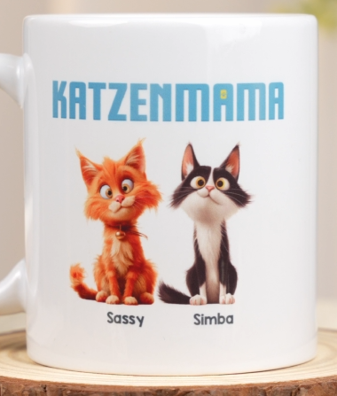 Katzenmama Katzenpapa - Personalisiertes Geschenk | Tasse für Katzenliebhaber Cartoon