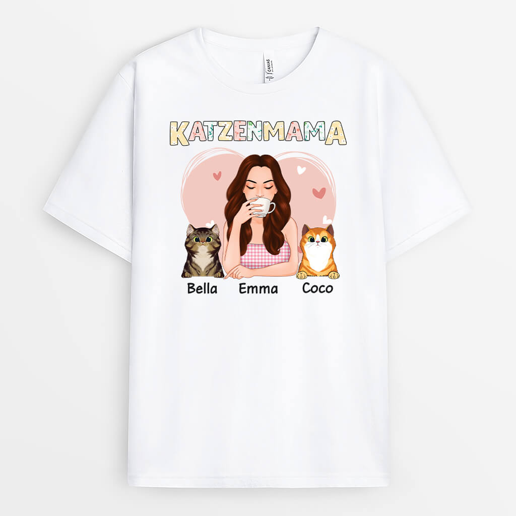Katzenmama Mit Blumen Und Herz - Personalisiertes Geschenk | T-shirt für Katzenliebhaber