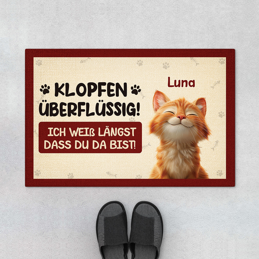 Klopfen Überflüssig Ich Weiß Längst Dass Du Da Bist - Personalisierte Geschenke Katze | Fußmatte